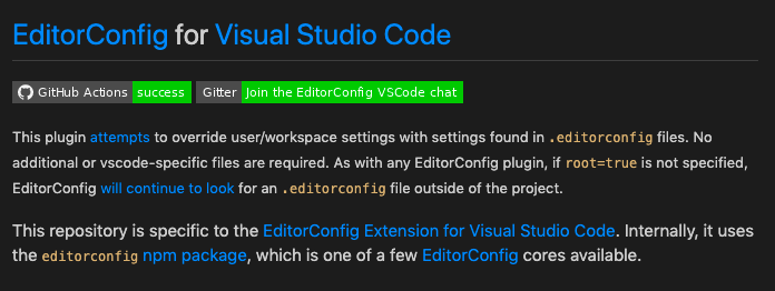 在公司工作,一定会遇到多个人参与一个项目的情况,即使的团队中使用多中 IDE 和编辑器,也可以用针对 VS Code 的 EditorConfig 来实现一致性。EditorConfig包含一个用于定义代码格式的文件和一批编辑器插件,这些插件是让编辑器读取配置文件并以此来格式化代码。