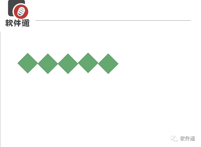 如下图所示:将每一个正方形尖角与尖角靠在一起,我们首先移动第二个正方形,然后依次类推的往左移动,我想你应该花了两三分钟,而且还对不齐!这里介绍iSlide的一个图形吸附功能,能将在同一水平线上的图形紧密靠在一起。