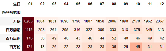可以看到1月份生日的up主显著多于其他月份,难道是一月份出生的人更适合做up主吗?