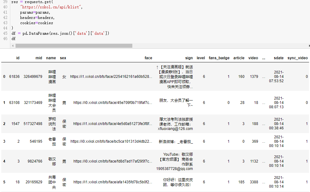 names = ["名称", "性别", "签名", "视频数量","粉丝数",