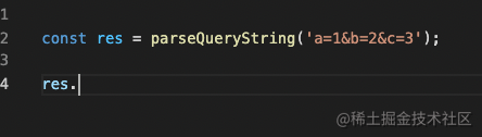 当然,这只是纯粹的类型体操,把它用到 JS 里才是最终目的,所以我们把 parseQueryString 的类型定义改成了这样: