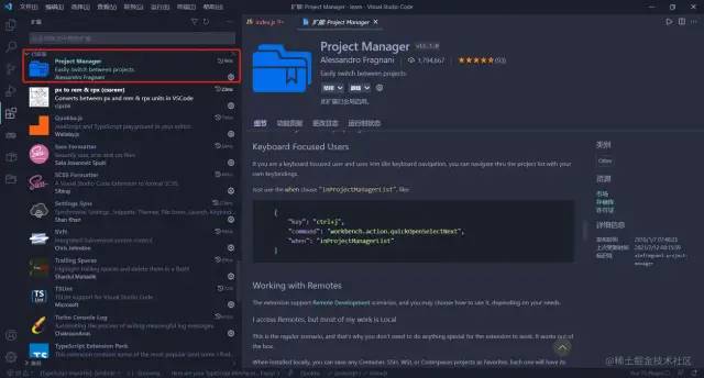 安装完以后左侧列表会出现一个 文件夹 的小图标,点开以后就可以进行项目管理了,通常都是操作projects.json 这个文件,点击项目名字就可以切换了,也可以新窗口打开。