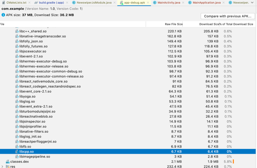 下面我们看下 C++ Moulde 的模式,相比 Java 模式,多了 cpp 模块,并在 Moudle 中以 Native lib 的方式加载 so:
