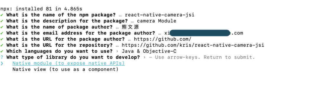 1、Facebook 提供了一个脚手架工程,方便大家创建 Native Module 模块,需提前增加 npx 命令。
