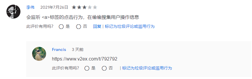 我们可以看到,这款插件的开发者不时会回复Chrome商店下的用户评论。