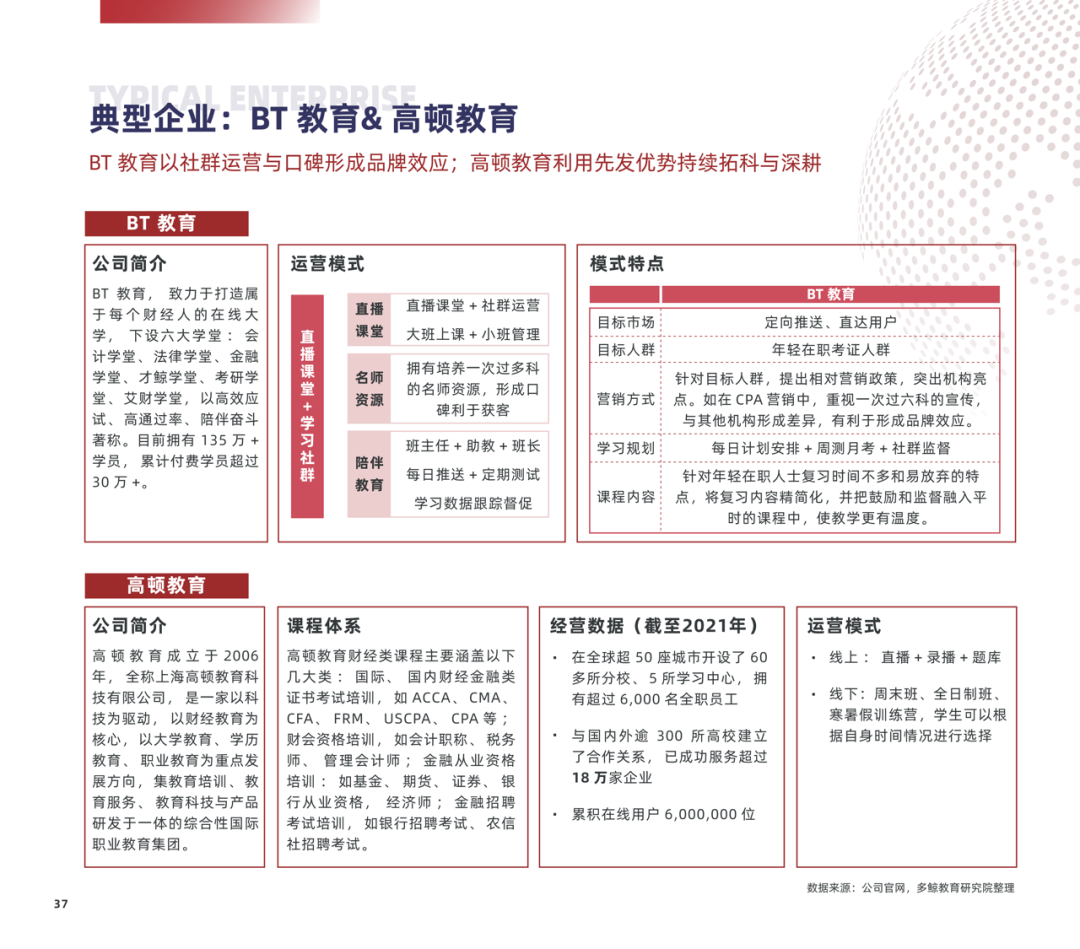 2022年1月,多鲸教育研究院出品了《2022 中国职业教育行业报告》,报告通过详细的行业梳理,以及对职业教育领域内多位顶尖专家的访谈,系统解读职业教育行业的当前格局和未来趋势,并对职业教育典型赛道进行分析和展望,为职业教育企业和投资人提供行业参考。