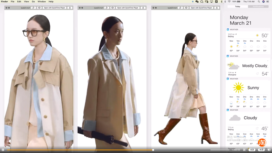 多窗口工作台,从不同角度呈现模特台步,更展现出现代都市女性多线程工作「自由通勤」风格。