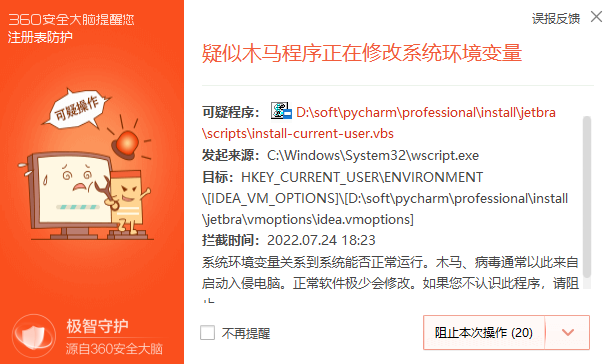由于插件会自动去创建相关环境变量,如果电脑安装了360之类的安全软件,会触发告警。这里需要点击下拉框,选择"允许所有操作"。