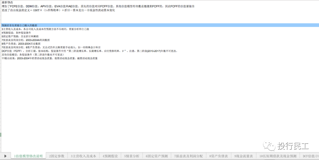 投行股票估值的Excel工作底稿(FCFF、FCFE、DDM、APV、EVA、AE)若需要,请关注下面公众号在后台回复关键词:投行 …